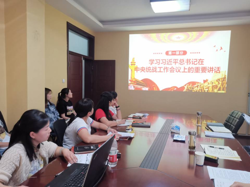 学习分为两个阶段。第一阶段由统战委员占翠为同志为大家讲党课——《做好新时代党的统一战线工作》,重点学习了习近平总书记在中央统战工作会议上的重要讲话。通过学习,大家深刻认识到统一战线工作在维护国家主权、安全、发展利益上的作用更加重要,在围绕中心、服务大局上的作用更加重要,在增强党的阶级基础、扩大党的群众基础上的作用更加重要。接着,大家一起学习了今年6月中共中央发布的《中国共产党政治协商工作条例》,了解了其修订的背景、政治协商工作的原则等重要内容。最后讲解了民主党派做出的重要贡献,特别是近年来应对新冠肺炎疫情、助力脱贫攻坚、推动乡村振兴等方面作出的重要贡献,进一步明确了我们要坚持爱国统一战线发展的正确方向。