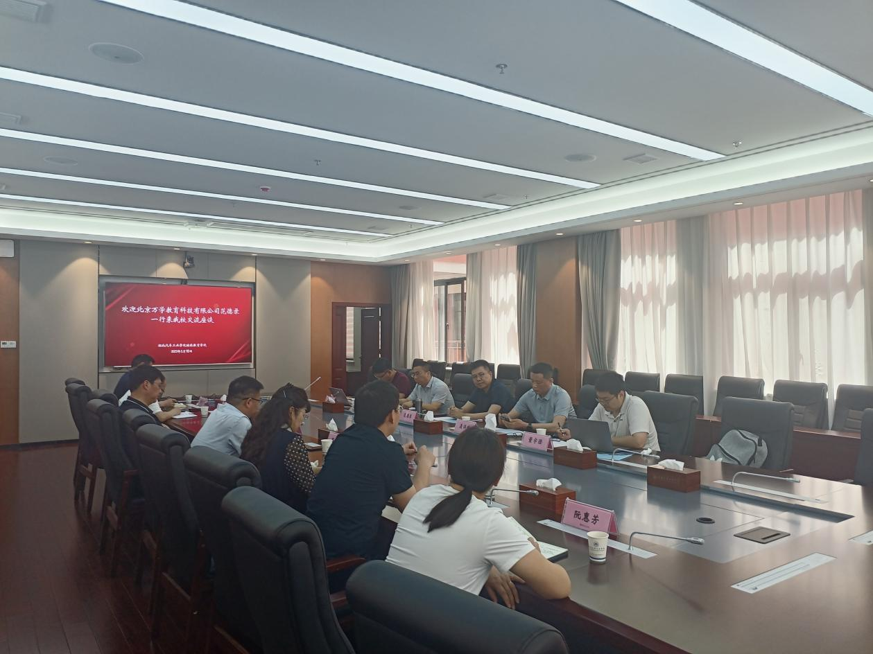 (文/图 吴迪)双向赋能,共谋发展。为了提升在校老员工综合素养,提高人才培养质量,努力实现老员工的高质量就业,5月18日,万学科技教育集团副总裁范德录一行来公司参加高校员工高素质培养专题研讨会。威廉希尔williamhill员工工作部部长王关峰、教务处副处长周明智、创新创业公司代表程鹏、招生与就业处科长李秀刚、公司领导及相关负责人出席会议。会议由威廉希尔williamhill经理缪勇主持。