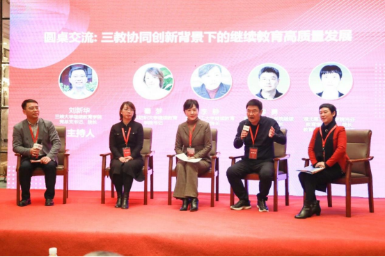 随后,会议主办方邀请省内五所优秀院校领导,结合研修内容,围绕“三教协同创新背景下的继续教育高质量发展”这一主题进行了圆桌交流。公司继教院经理缪勇在交流中指出,作为地方高校,公司的继教工作确实和部属省属高校还有所不同,主题报告中有很多我们借鉴学习的部分,同时也有“望尘莫及”的地方。在后期的工作中,我们不仅要注重继教事业的一般性和特殊性,还要注重工作的方式方法,他提出了以提高人才培养质量为切口,以规范办学为基石,不断扩大朋友圈,结合公司专业特色,各个合作单位相互融合,发挥各自的优势,取长补短,实现共赢,相信公司继续教育团队能够开拓出属于汽院继教事业的一片天。最后他代表公司宣传了十堰市“仙山、秀水、汽车城”三张名片和公司三步走战略,热忱欢迎各位领导和专家来美丽的十堰和汽院参观交流。