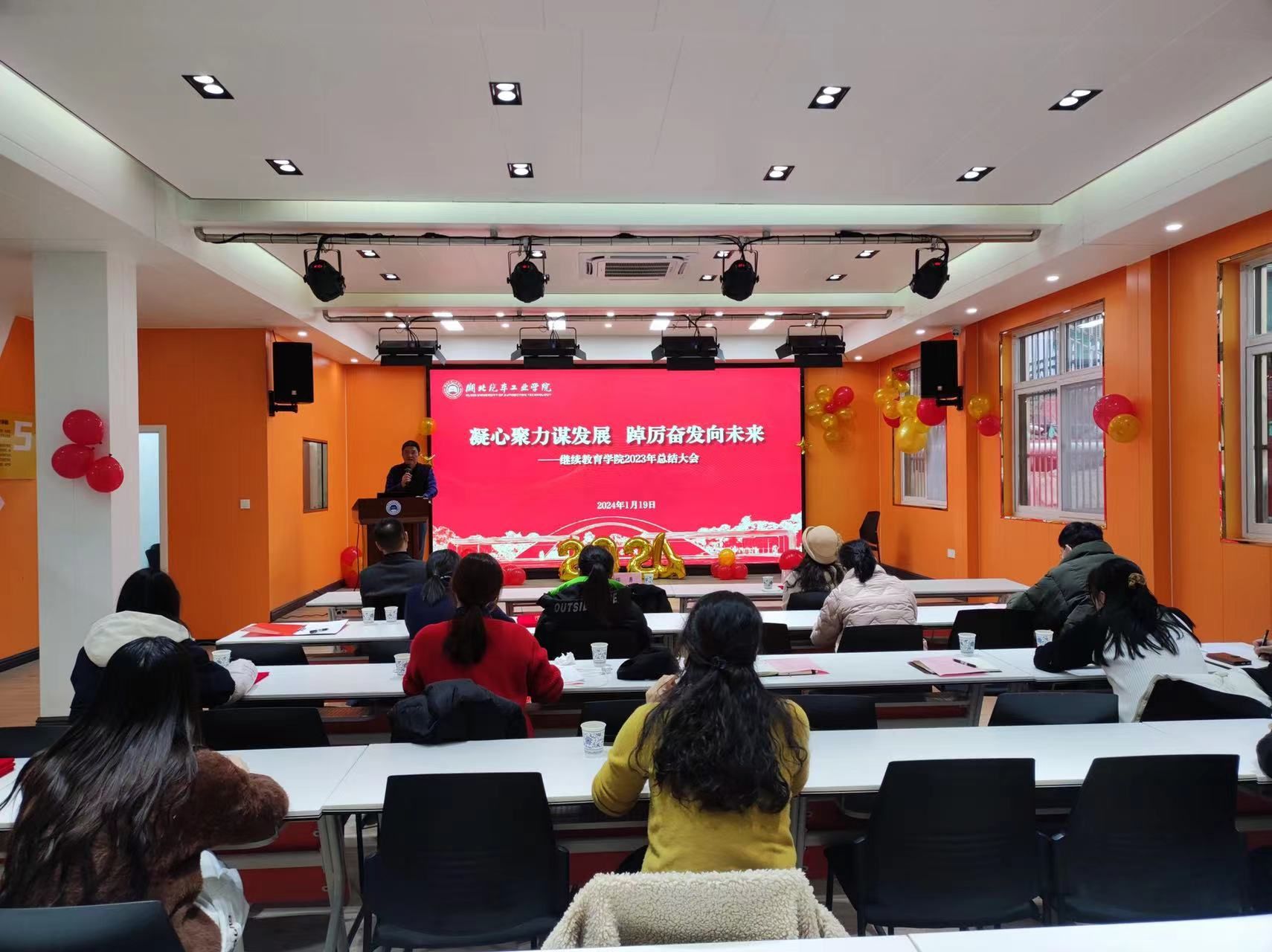 会上,继续教育中心、自学考试中心、培训教学中心和信息融合与管理中心相关负责人分别上台对本科室工作职责、2023年工作完成情况及2024年工作目标进行了汇报。